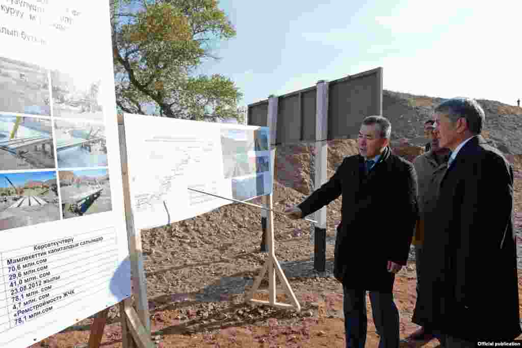 В Жумгальском районе в торжественной обстановке открыли новый автомобильный мост, по которому в будущем пройдет альтернативная трасса, соединяющая север и юг страны. Строительство моста со сметной стоимостью 82 млн. 700 тысяч сомов было начато в 2012 году. Подрядчик – ОсОО “Ремстроймост”. Источник финансирования – государственный бюджет. На мосту также предусмотрен огражденный тротуар для пешеходов. "Азаттык", Кыргызская служба РСЕ/РС
